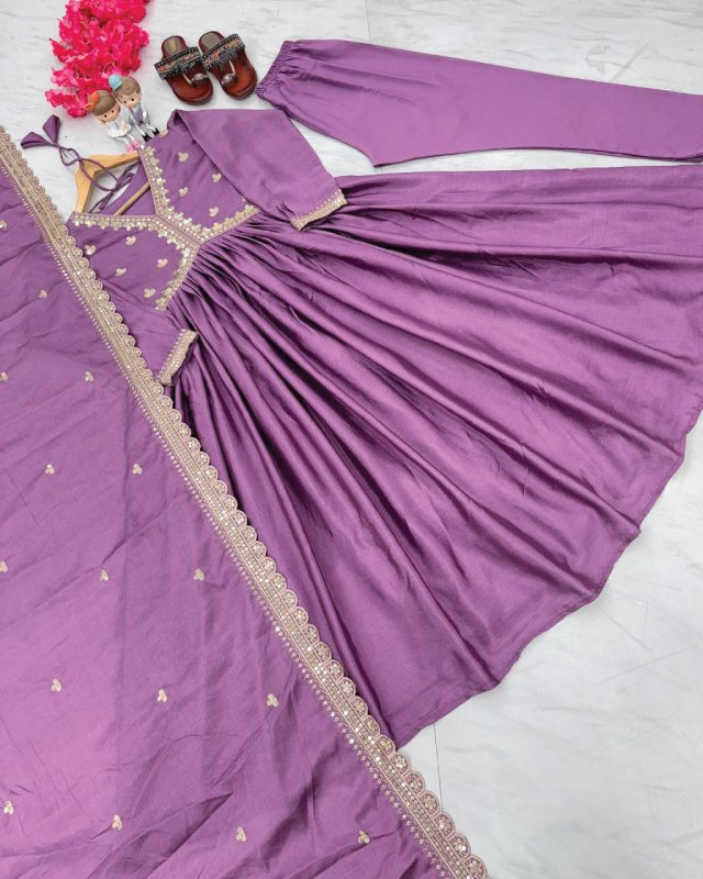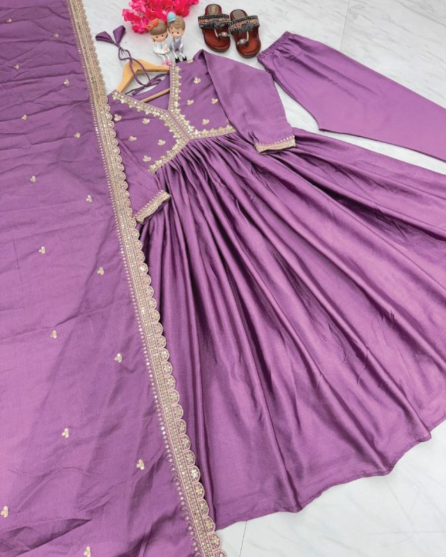 To buy Indian shalwar in Qatar, the PD1048 Premium Designer Alia Cut Gown Set is your go-to choice for festive elegance. With its Chinon silk fabric, intricate embroidery, and unique design details, it offers a perfect balance of comfort and style.